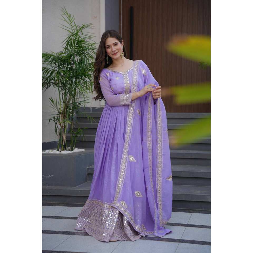 Designer Handmade A-Line Gown for Party Wear Embroidery & Sequins Work Empire Waistline Chiffon Fabric