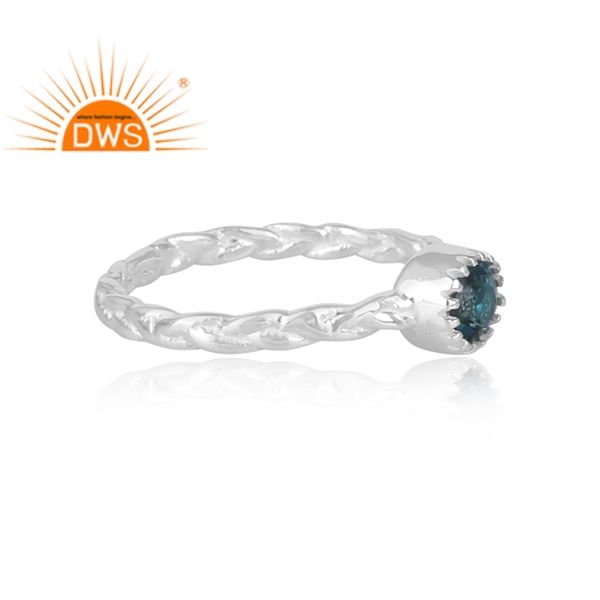 ออกแบบทำด้วยมือเงินสเตอร์ลิงธรรมชาติสีฟ้าบุษราคัมหินอัญมณีแบบวางซ้อนกันได้เครื่องประดับผู้ผลิต