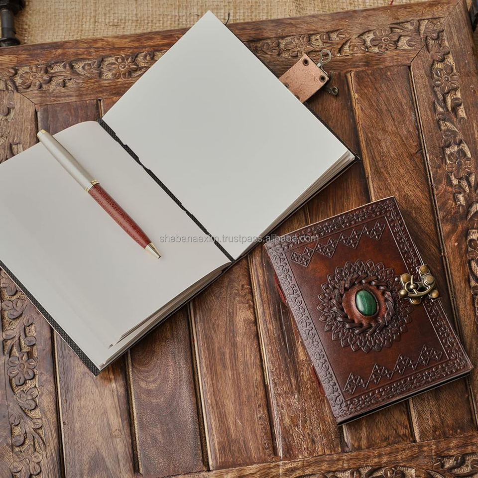 สมุดบันทึกหนังทำมือ ดีไซน์เนอร์ งานฝีมือ น้ำหนักเบา พร้อมระบบล็อค ของที่ระลึกจากอินเดีย