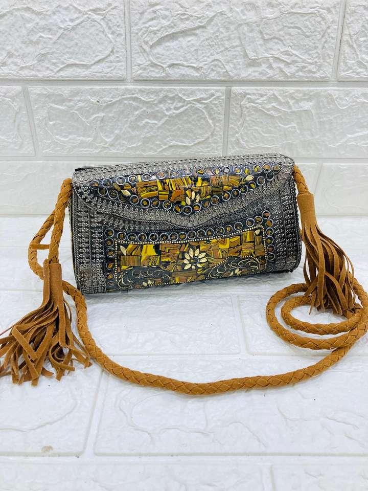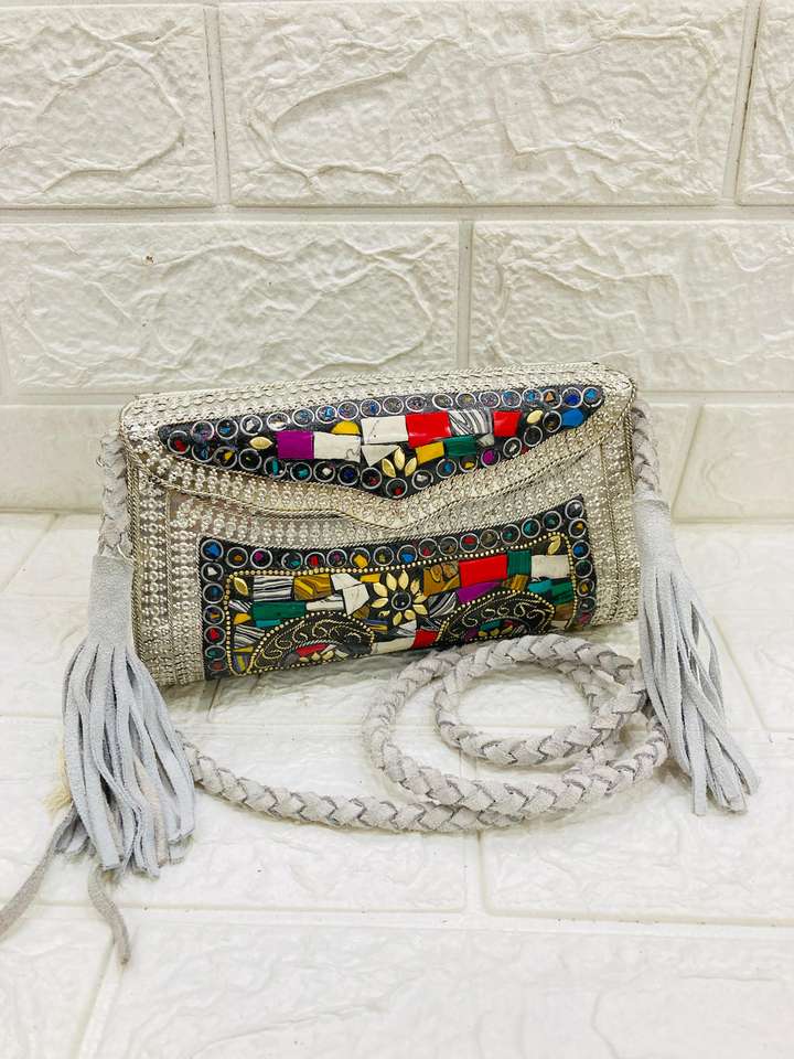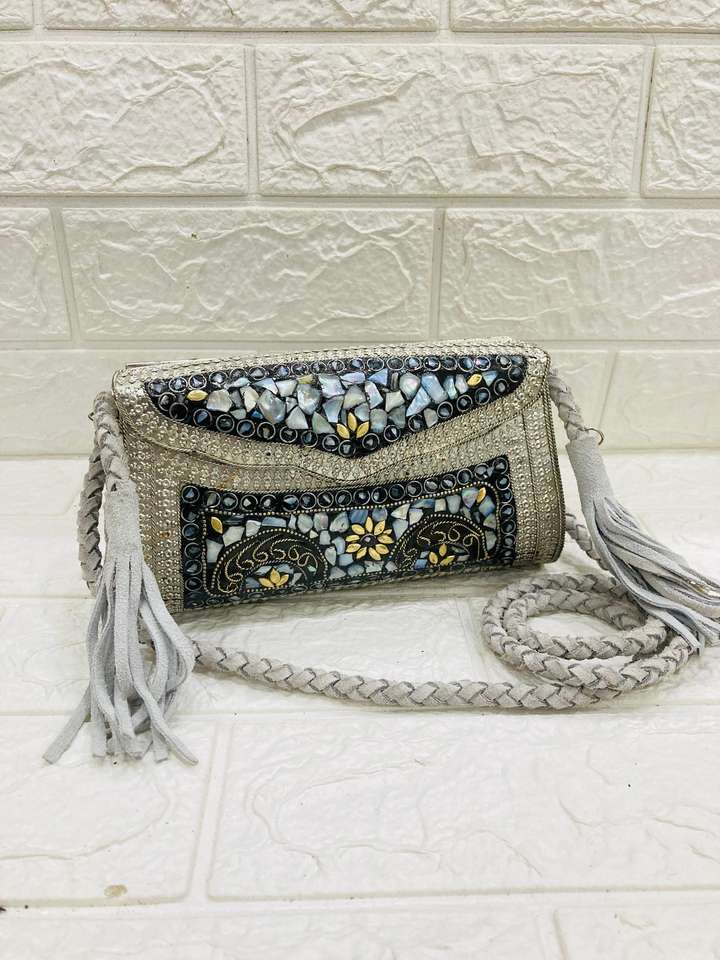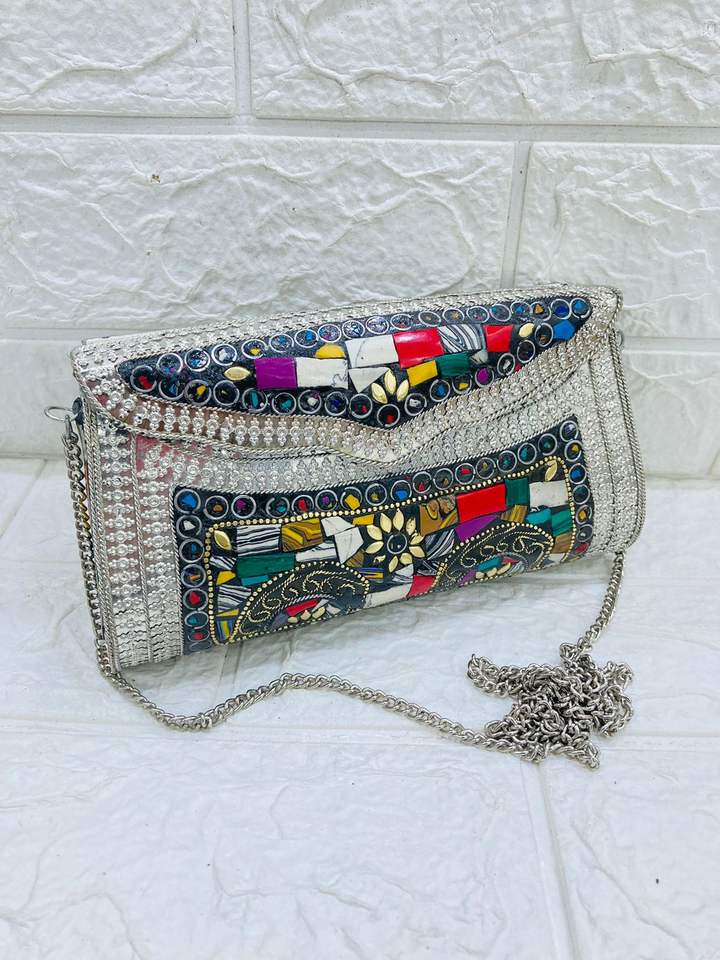 กระเป๋าคลัทช์โมเสคโลหะทำด้วยมือดีไซน์เนอร์สำหรับเจ้าสาวสำหรับงานเลี้ยงตอนเย็นสุดพิเศษพร้อมลวดลายหินแฟชั่นทำจากอินเดีย