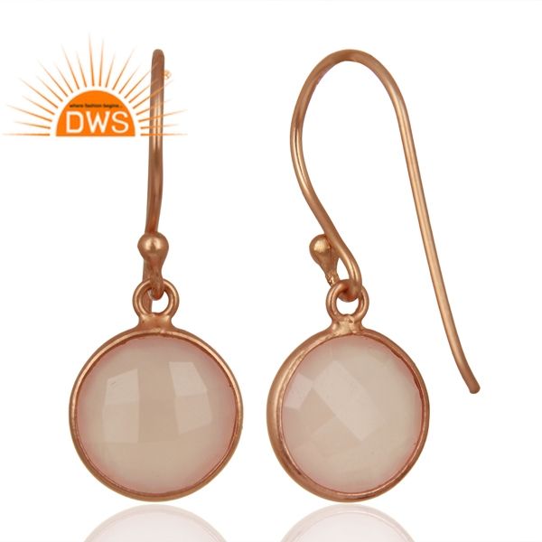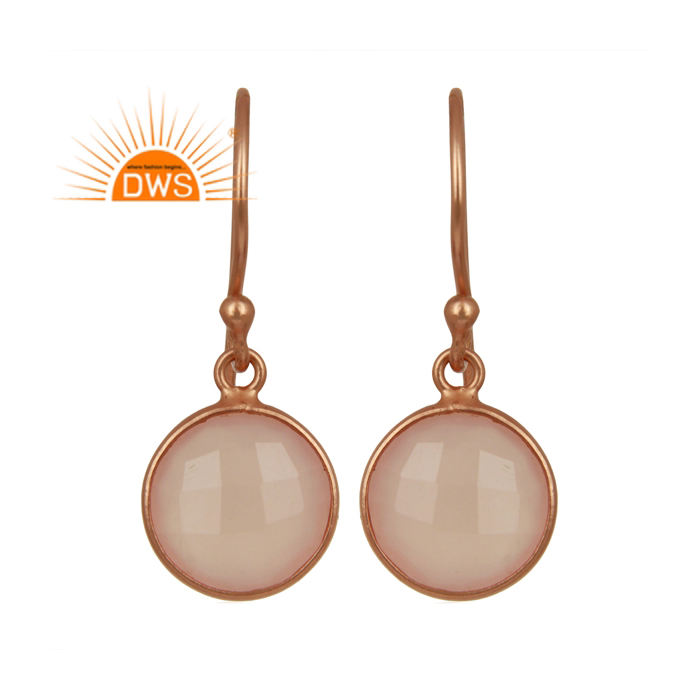 ต่างหูพลอยคาลซิโดนีธรรมชาติชุบโรสโกลด์เงินสเตอร์ลิงแฮนด์เมดจากดีไซเนอร์