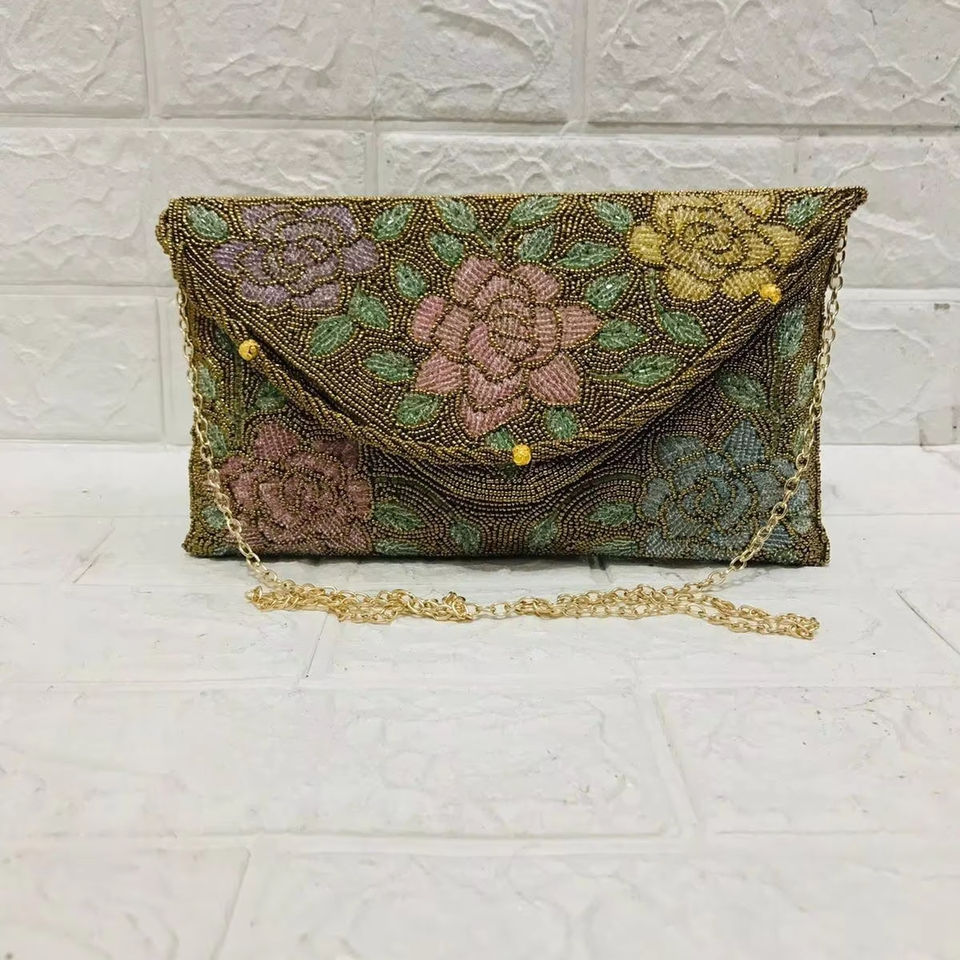 คลัทช์ลูกปัดหินงานแฮนด์เมดสำหรับผู้หญิงชุดปาร์ตี้งานแฟชั่นสำหรับเจ้าสาวตอนเย็น