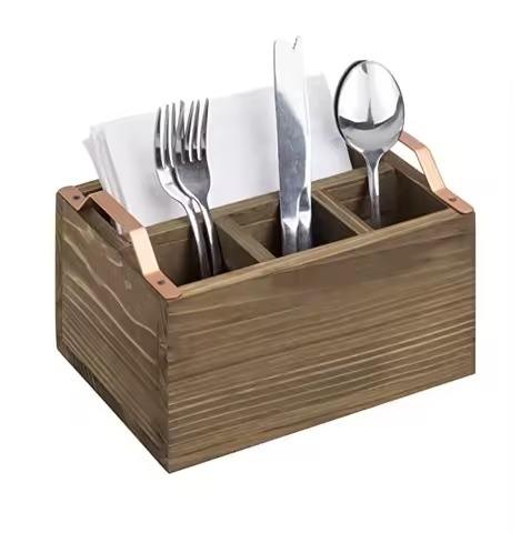 ที่ใส่ช้อนส้อมไม้ทำมือ ดีไซน์ใหม่ สำหรับบ้าน โรงแรม ร้านอาหาร วางบนโต๊ะอาหาร
