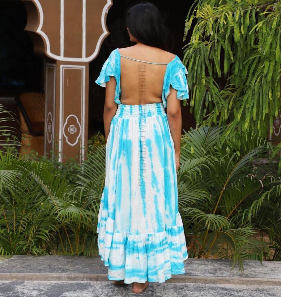ชุดกระโปรงชาวโบฮีเมียนสไตล์ฮาวายสำหรับผู้หญิง,ชุดผ้าเรยอนผ้าบาติกมัดย้อมสำหรับฤดูร้อน