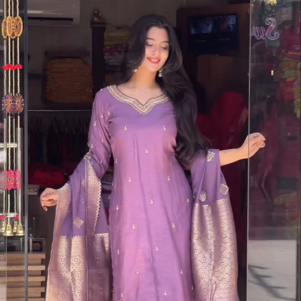 ชื่อผลิตภัณฑ์:ผ้าไหมกล้วย Chanderi ด้านบนด้านล่างและ dupatta