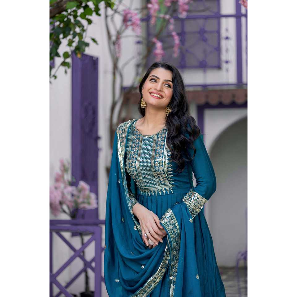ชุดเดรสราตรีสำหรับทำงานชุดเดรสงานปาร์ตี้ปักลายพร้อม Dupatta