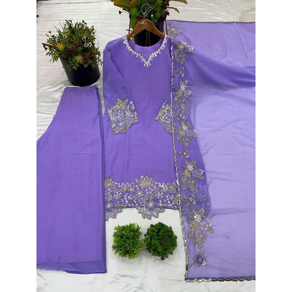 ชุดเสื้อผ้าสีม่วงปักลายหนักแบบดีไซน์เนอร์ SRK พร้อมผ้าคลุมไหล่ สำหรับงานแต่งงาน ไซส์ XL