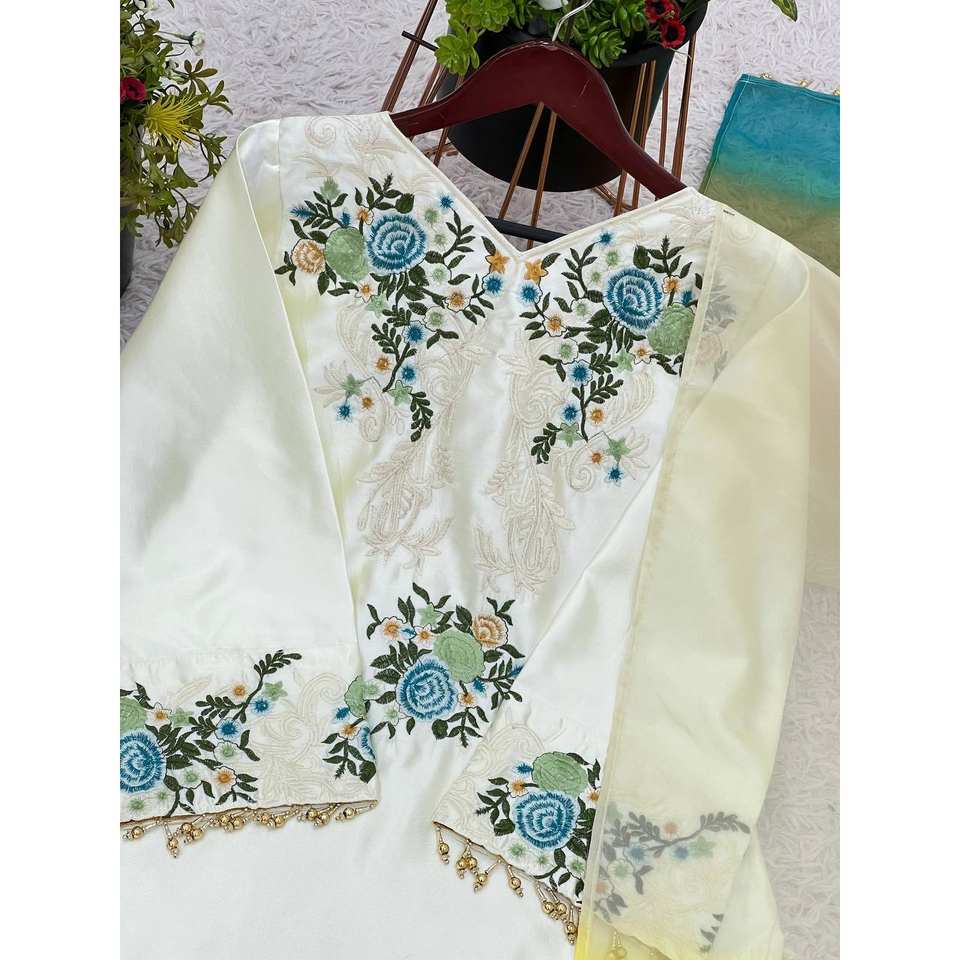 ชุดปักลายสำหรับนักออกแบบเสื้อท่อนบนและ dupatta ขนาด XL