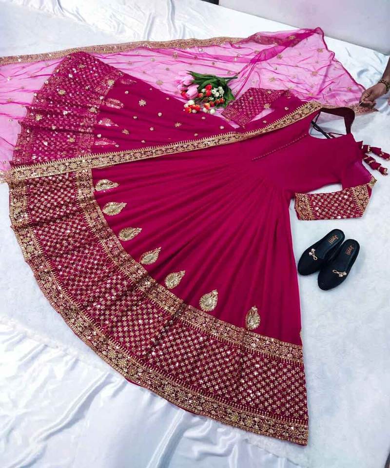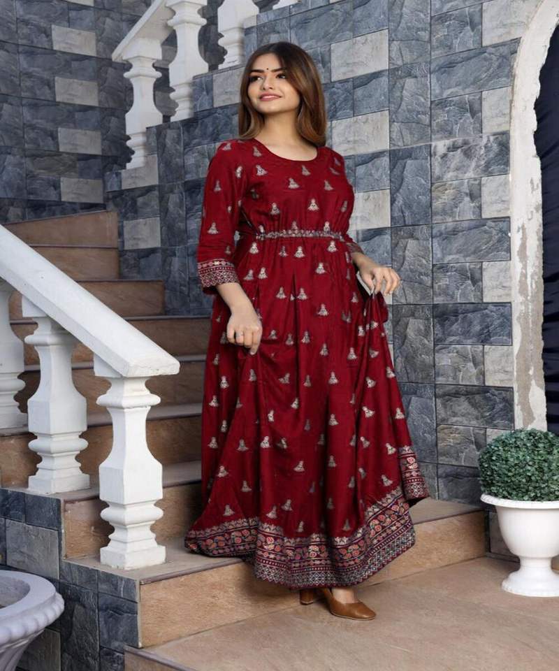 ชุดราตรียาวคอปาดแขนปกติสำหรับผู้หญิงอินเดียพิมพ์ลายงานเย็บปักถักร้อยสำหรับผู้หญิงชาวอินเดีย