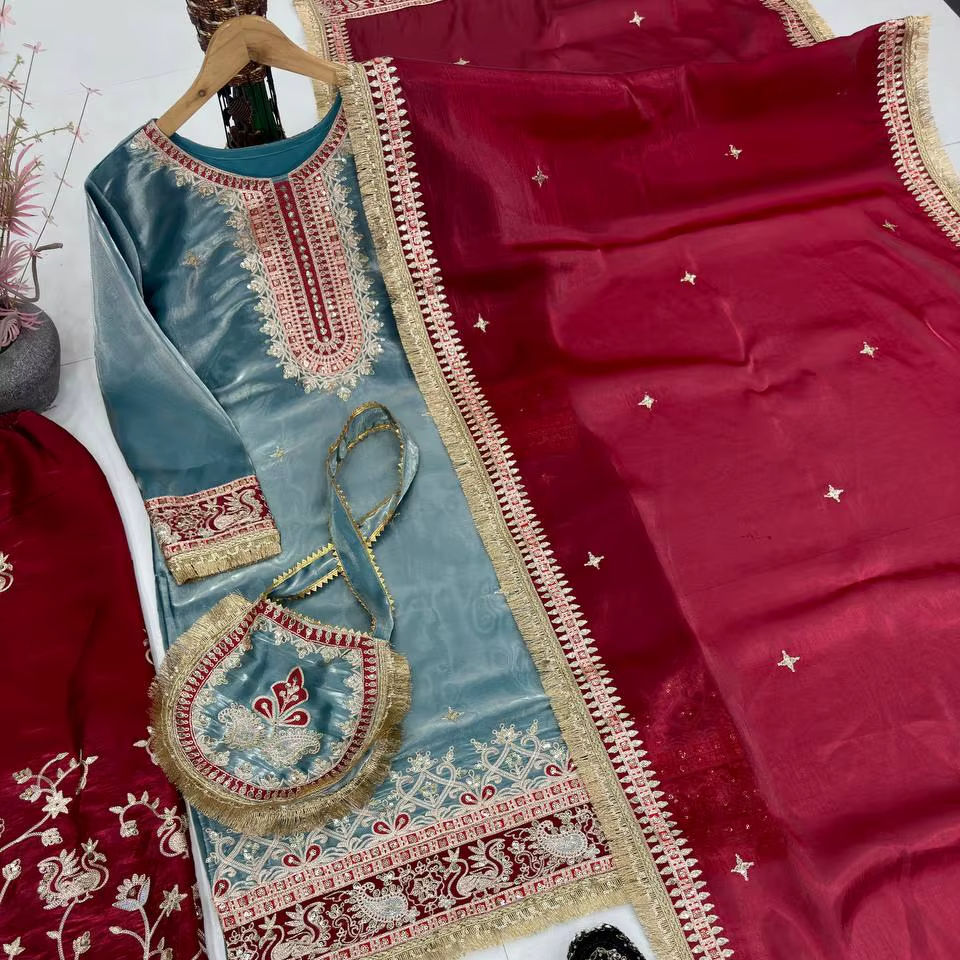 HEAVY EMBROIDERED CHINE SEQUENCE WORK