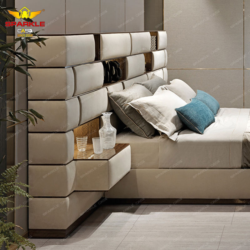 เตียงผ้าดีไซน์หรูหราทันสมัย หุ้มหนังแท้ ประดับด้วยวัสดุระยิบระยับ สำหรับห้องนอน