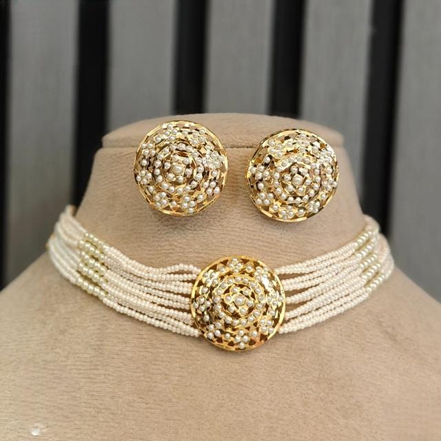 ชุดสร้อยคอพร้อมต่างหูดีไซน์เนอร์คุณภาพสูง ชุบทองคำ ประดับด้วยจี้แบบ Jadau สำหรับงานแต่งงานและงานปาร์ตี้ คอลเลคชั่นคลาสสิกสำหรับผู้หญิง