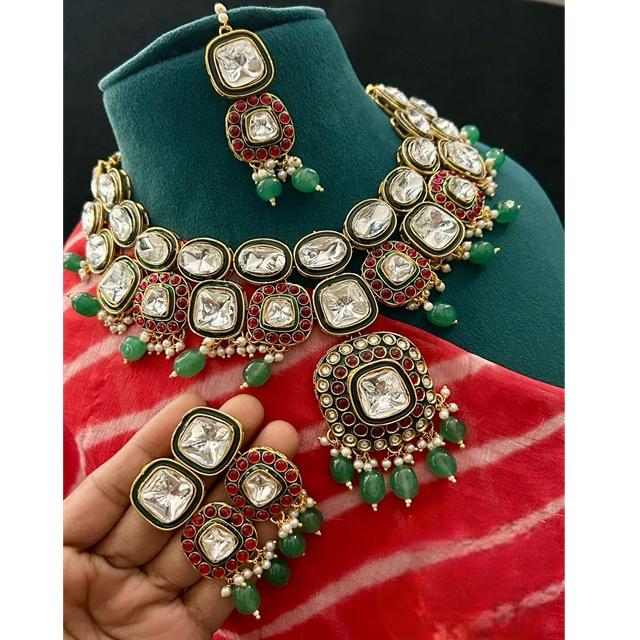 ชุดสร้อยคอพร้อมต่างหูประดับด้วยหินคันดันชุบทองคุณภาพสูง ดีไซน์หรูหรา สำหรับงานแต่งงาน คอลเลคชั่นสำหรับผู้หญิง