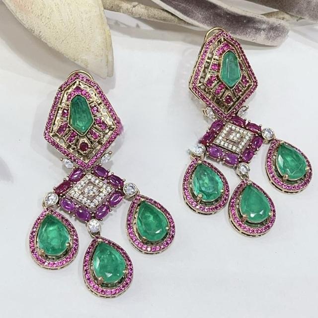 ต่างหูฟิวชั่นหรูหราโทนสีทองคุณภาพสูงดีไซน์เนอร์ชุดทันสมัยสำหรับงานเลี้ยงงานแต่งงานคอลเลกชันเครื่องแต่งกายสำหรับผู้หญิงและเด็กผู้หญิง