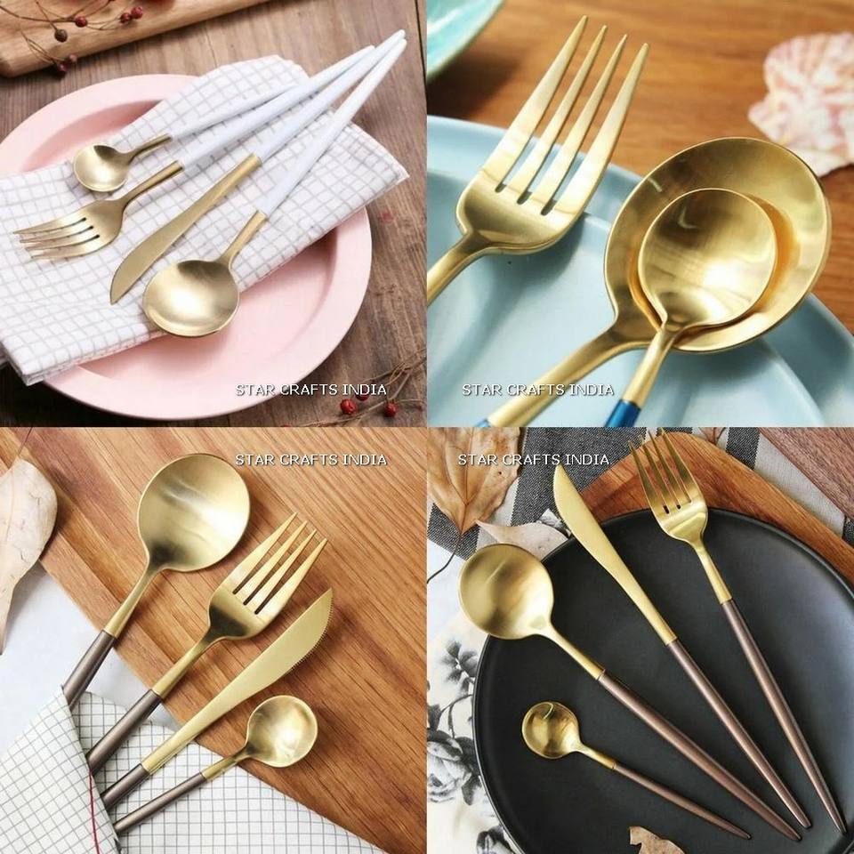 ชุดช้อนส้อมมีดสแตนเลสสีทองจาก304ดีไซเนอร์ขายดีชุดเครื่องใช้บนโต๊ะอาหาร6ชิ้นด้ามจับเรซินสีขาวหินอ่อน