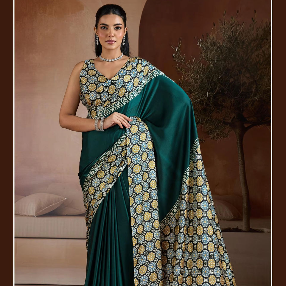 ผ้าแพรซาตินดีไซเนอร์อินเดียพิมพ์ลายสวยสไตล์ดั้งเดิมสำหรับงานแต่งงานปาร์ตี้ปากีสถาน
