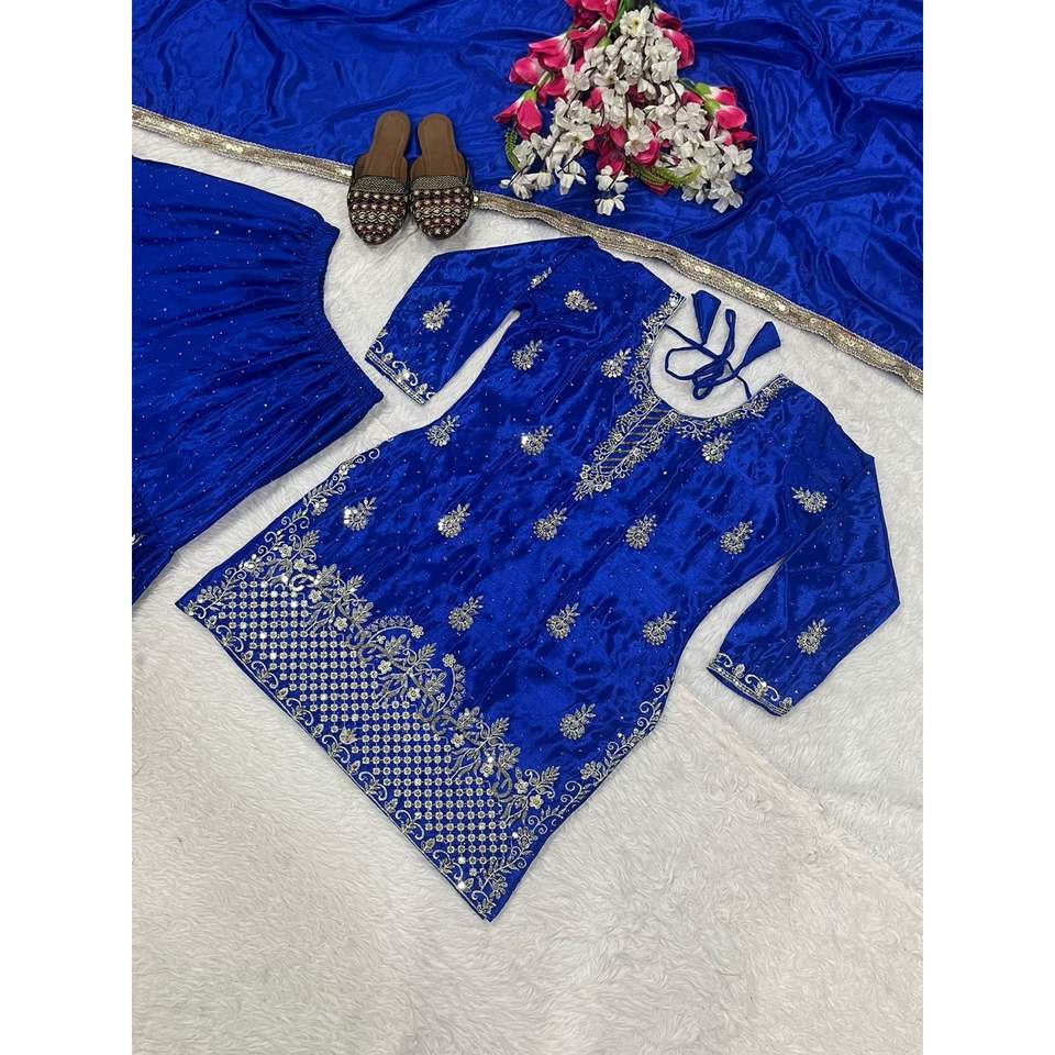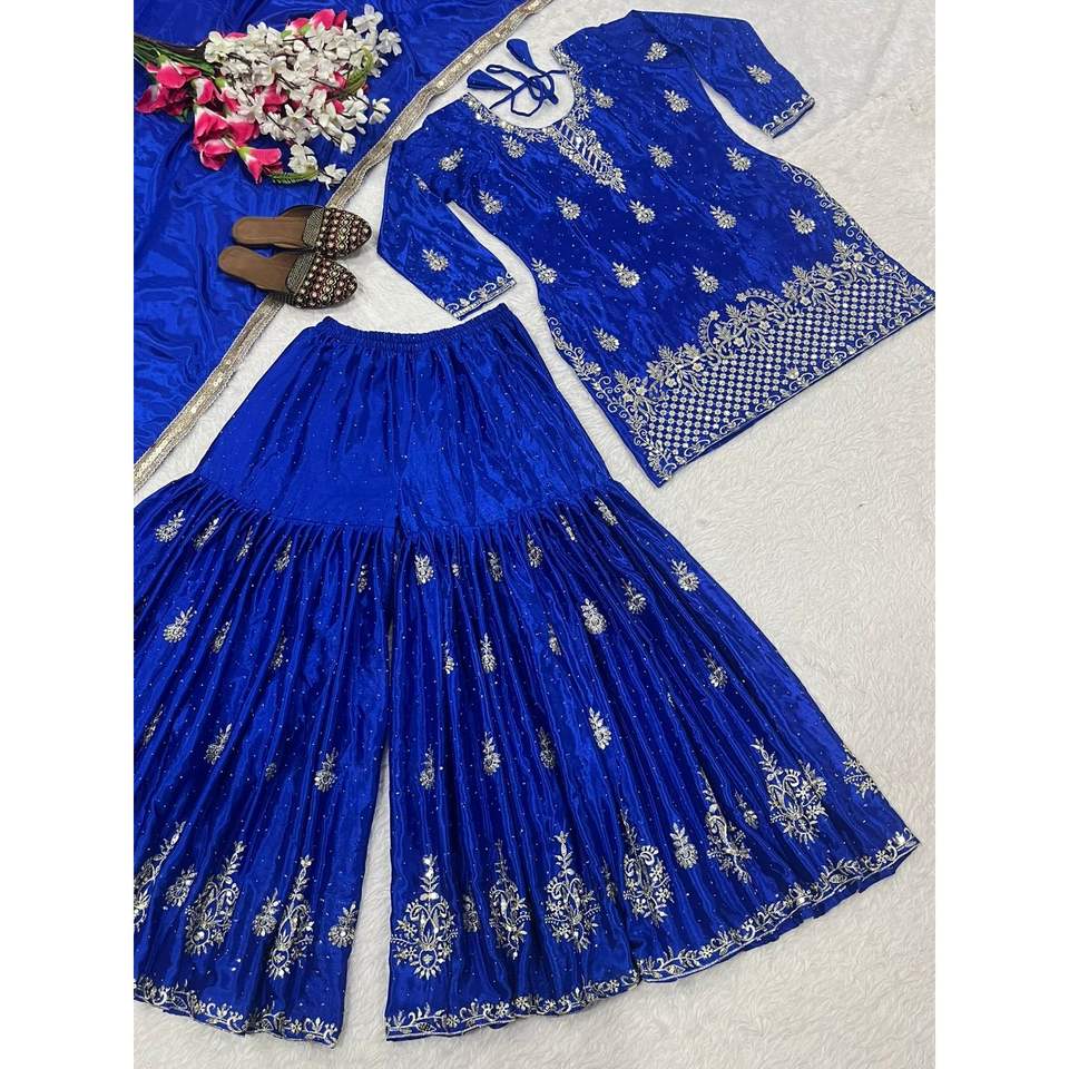 เสื้อผ้าอินเดียและปากีสถานที่ออกแบบอย่างหรูหราสวมใส่เสื้อปาร์ตี้กับ sharara plazzo และ dupatta
