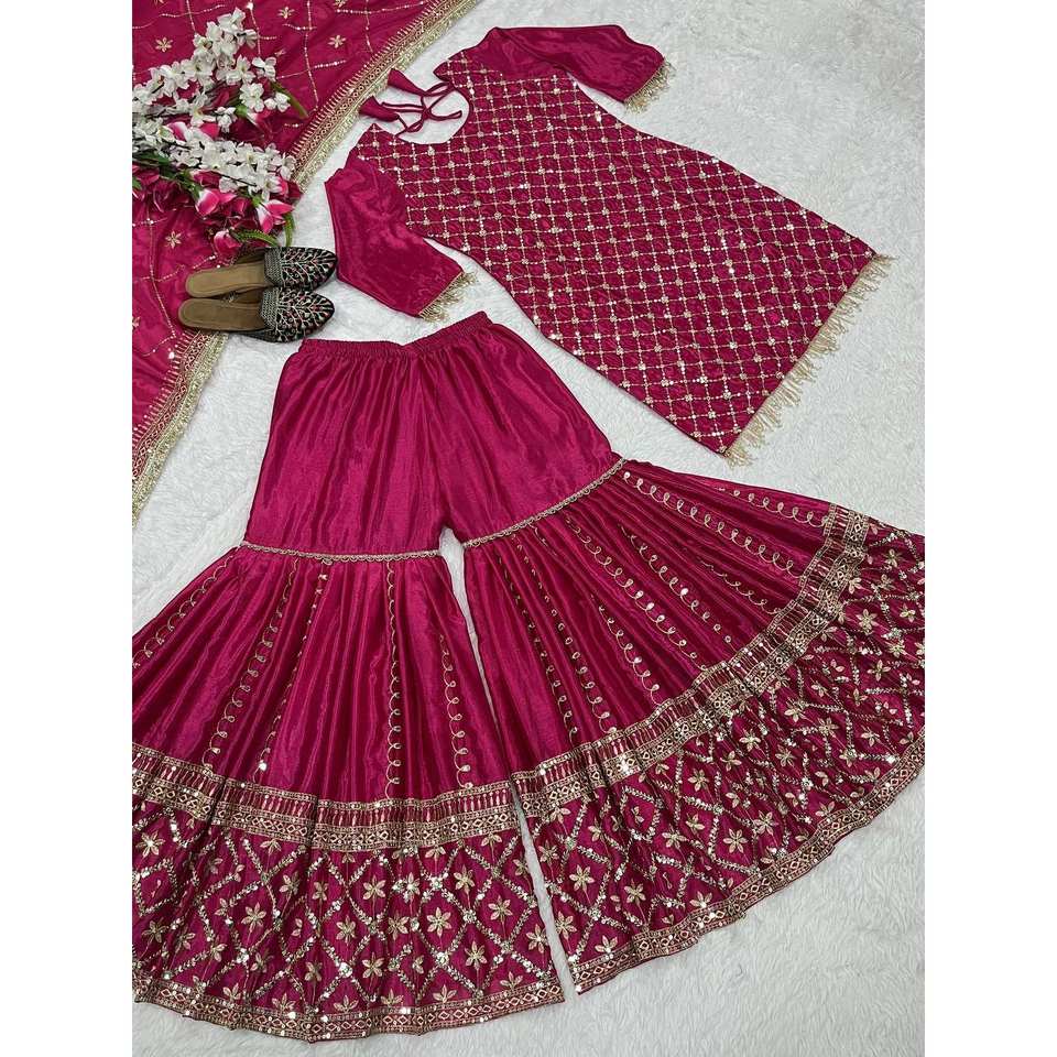 เสื้อผ้าดีไซเนอร์อินเดียและปากีสถาน ชุดออกงานหรูหรา พร้อมกางเกงชารารา ปาลาซโซ และผ้าคลุมไหล่