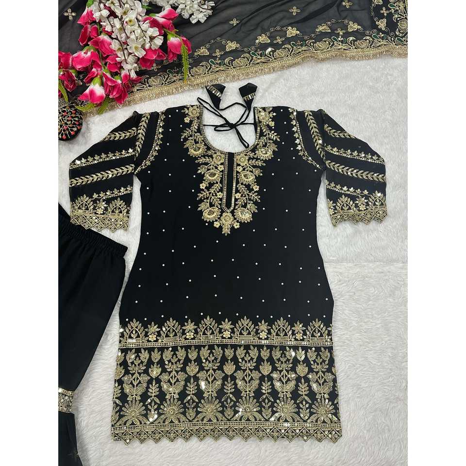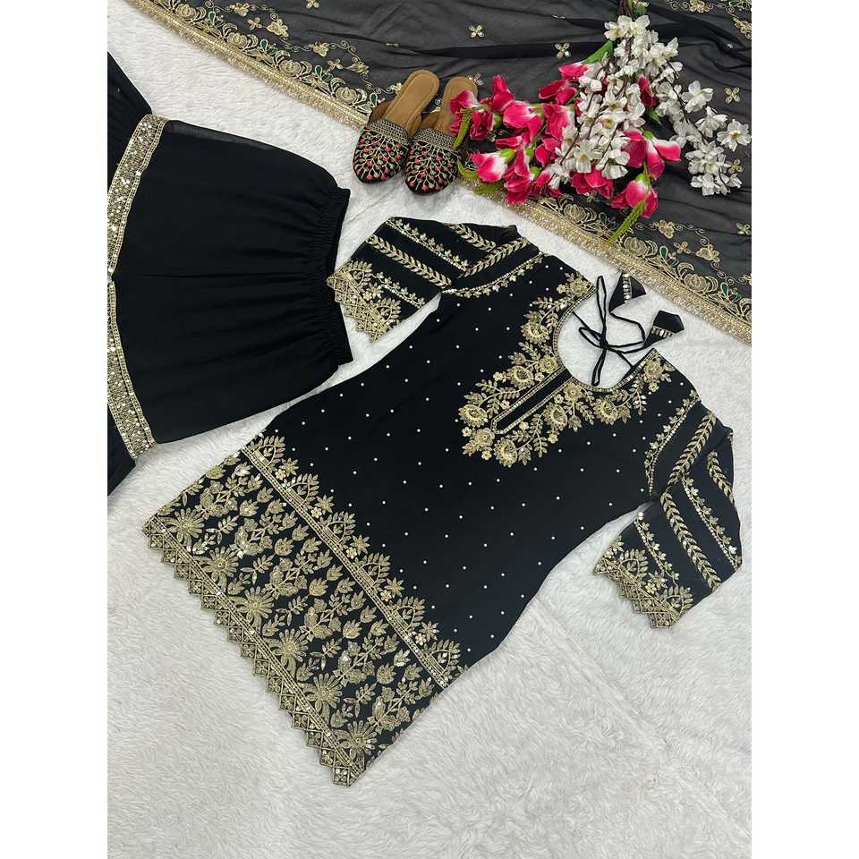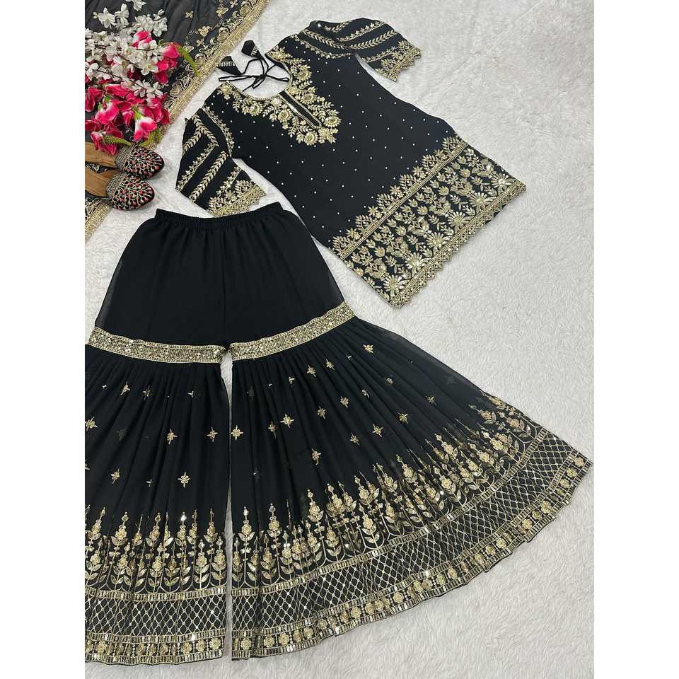 เสื้อผ้าดีไซเนอร์อินเดียและปากีสถาน ชุดออกงานหรูหรา พร้อมกางเกงชารารา ปาลาซโซ และผ้าคลุมไหล่