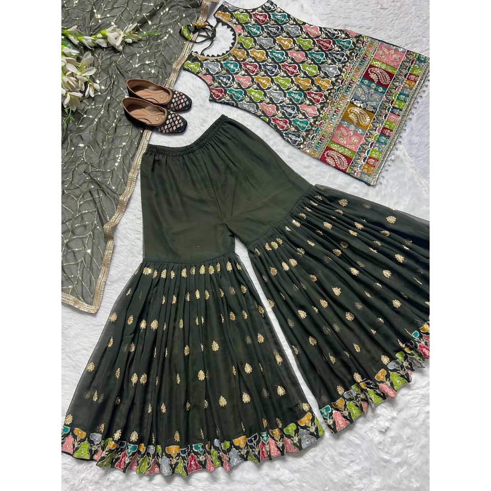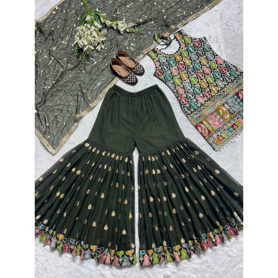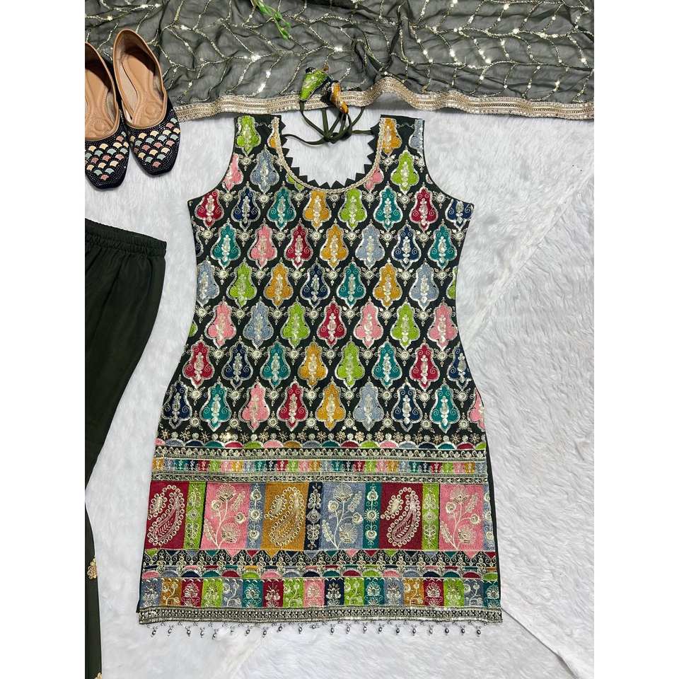 Designer Indian & Pakistani Clothing Elegant Party Wear Top Bottom and Dupatta with Embroidery Sequence Work