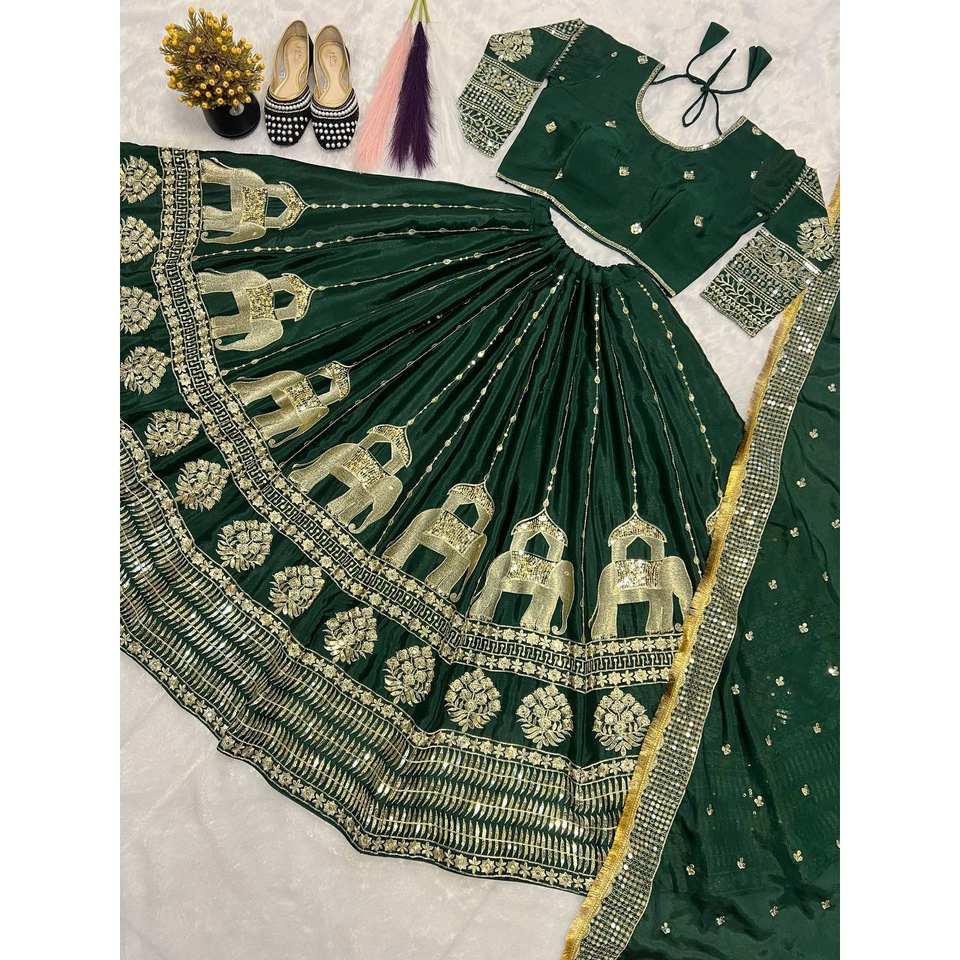 ชุดแต่งกายอินเดียและปากีสถานปักลายด้วยผ้าลาย lehenga choli ตามลำดับการทำงาน