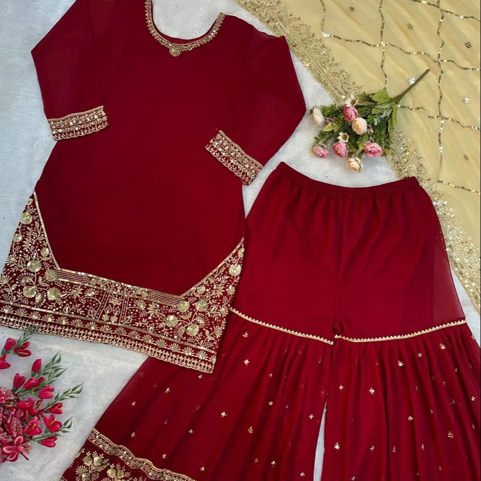 Designer Indian & Pakistani Clothing Fancy Duppata and Embroidery Work Party Wear Top and Plazzo