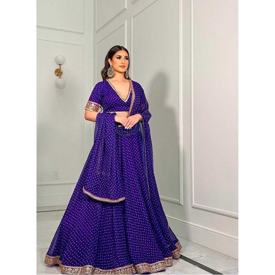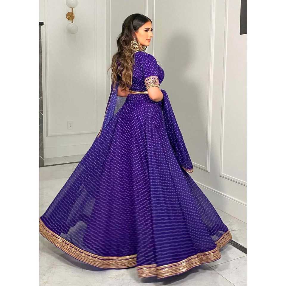 ชุดเลเฮนกาโชลีงานปาร์ตี้สไตล์อินเดียและปากีสถาน พร้อมงานปักขอบด้วยด้ายซารี