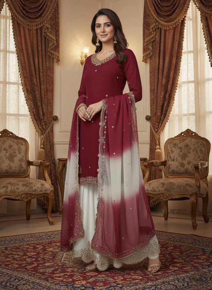 ชุดคุรตะสไตล์อินเดีย-ปากีสถาน พร้อมผ้าคลุมไหล่ปักเลื่อมผ้าออร์แกนซ่า ขายส่งเสื้อผ้าชาติพันธุ์
