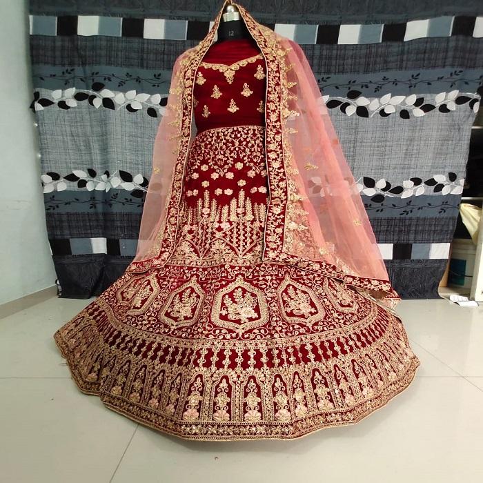 ดีไซน์เนอร์สไตล์อินเดียสีแดงสำหรับเจ้าสาว Lehenga Choli Unstich Design Lahnga Choli ผู้ค้าส่ง