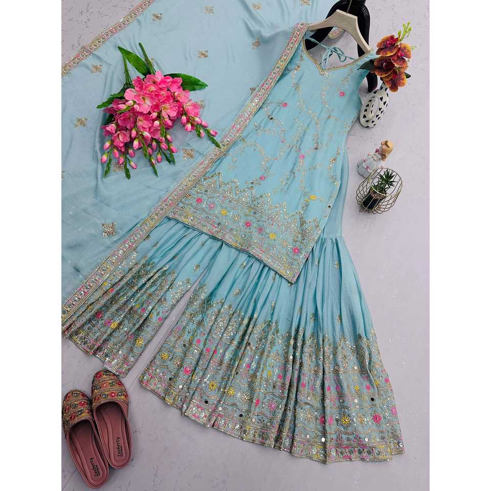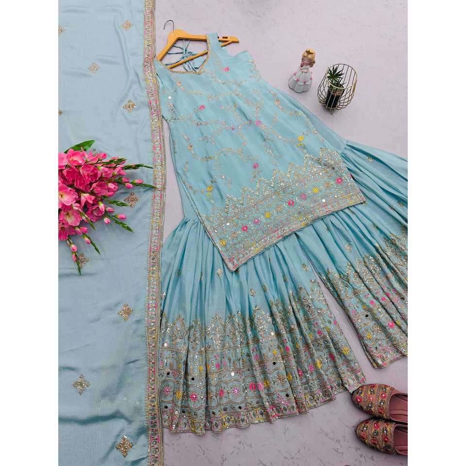 ชุดสูทดีไซเนอร์สไตล์อินเดียและปากีสถานสำหรับงานปาร์ตี้ ตกแต่งด้วยงานปักด้าย