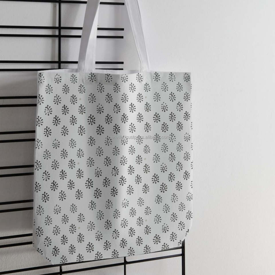 กระเป๋าโท้ทผ้าฝ้ายผสมลายบล็อกพิมพ์ ดีไซน์หรูหรา สะพายไหล่ ใช้ใส่ของช้อปปิ้ง