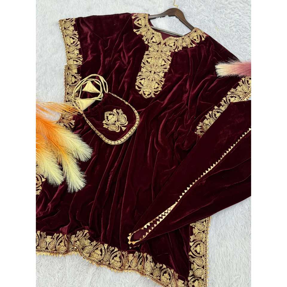 คาฟตันดีไซเนอร์พร้อมเย็บปักถักร้อยและแฟนซีลูกไม้ชายแดนสำหรับแฟชั่นอินเดียและปากีสถาน