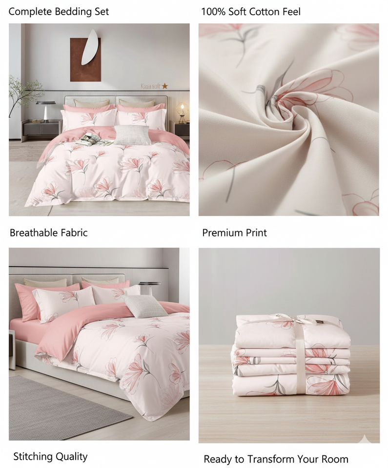 รวมส่วนประกอบ: ผ้าปูที่นอน 1 ผืน + ปลอกหมอน 2 ใบ