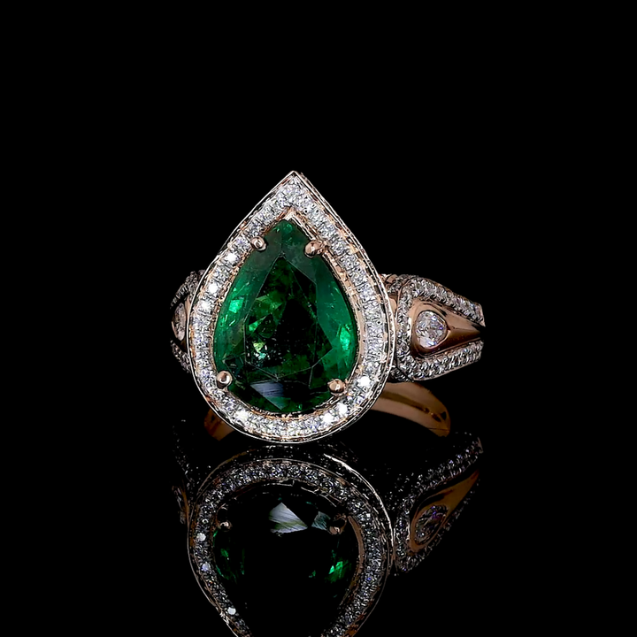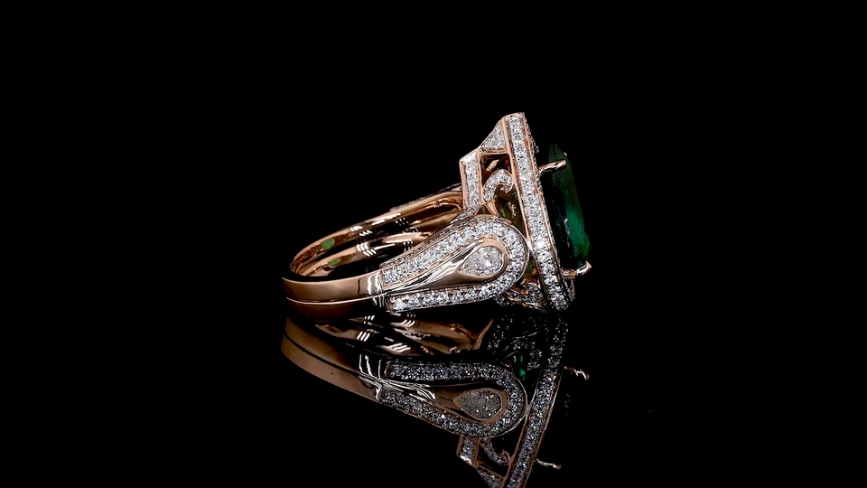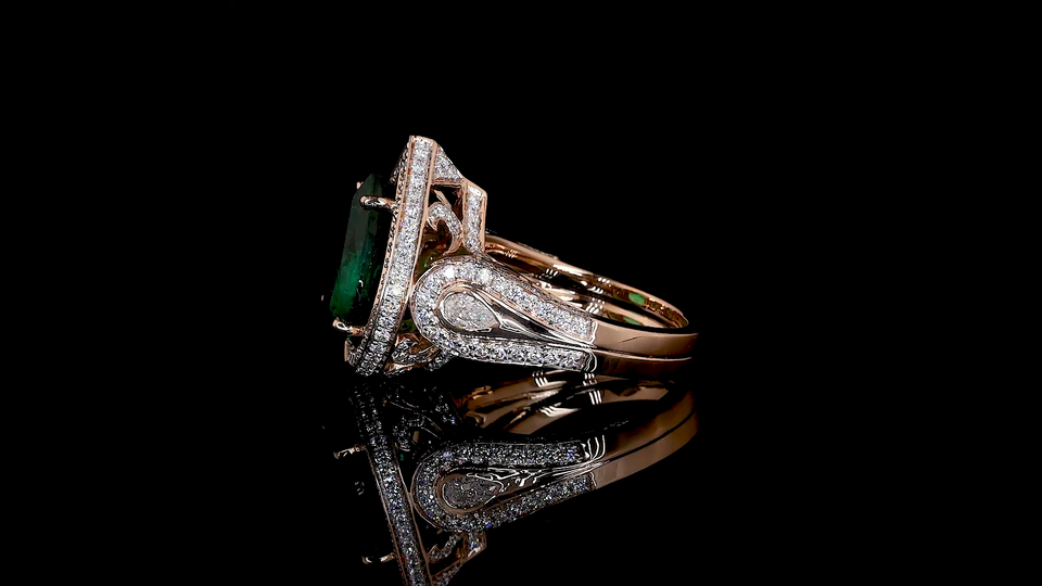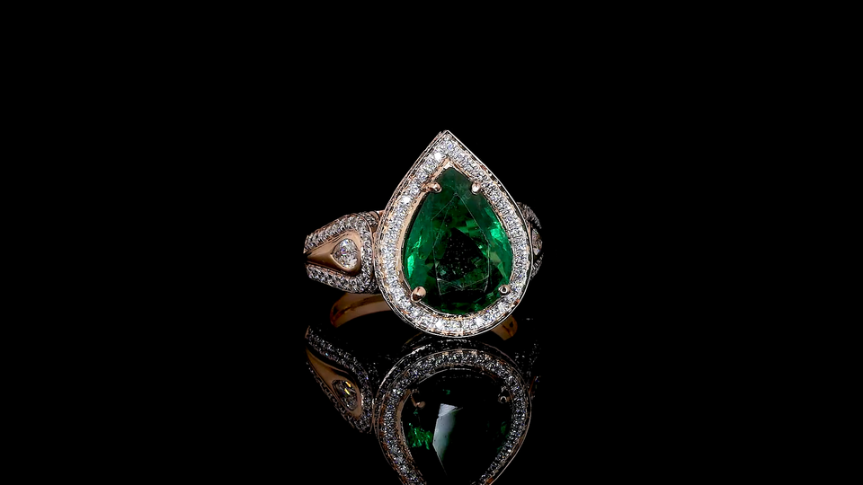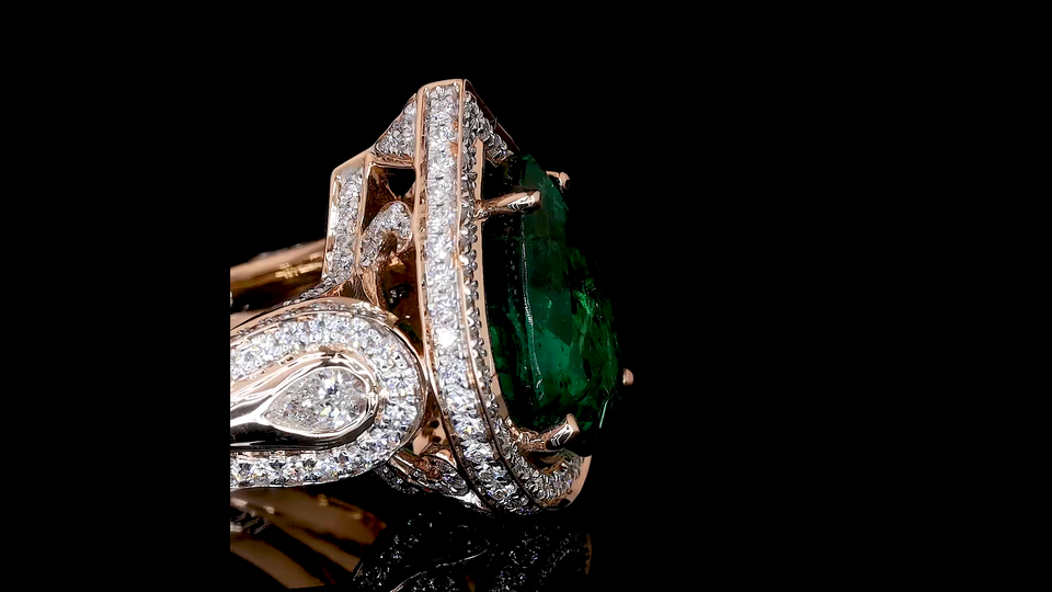แหวนมรกตสีเขียวจาก Designer Lab ประดับเพชรทรงหยดน้ำและทรงกลมที่เพาะเลี้ยงในห้องปฏิบัติการ | เครื่องประดับงานแต่งงานและงานปาร์ตี้