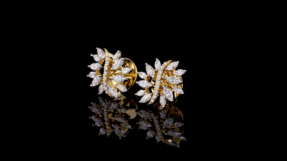 Designer Lab Grown Diamond Stud Earrings in Yellow Gold | Bridal & Wedding Fine Jewelry