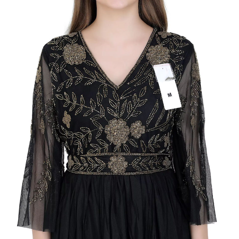 กระโปรงตาข่ายบอดี้คอนหรูหราออกแบบโดยดีไซเนอร์สำหรับสตรีชุดราตรียาวถึงพื้นประดับด้วยเลื่อมไข่มุกสำหรับงานแต่งงานสไตล์วินเทจ