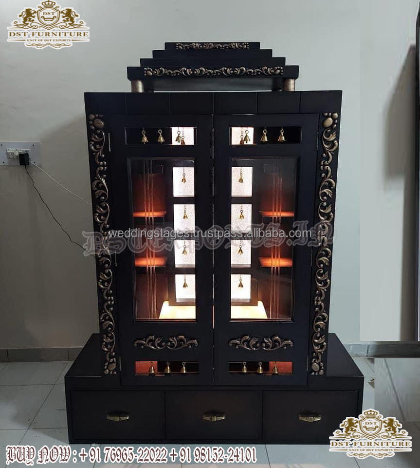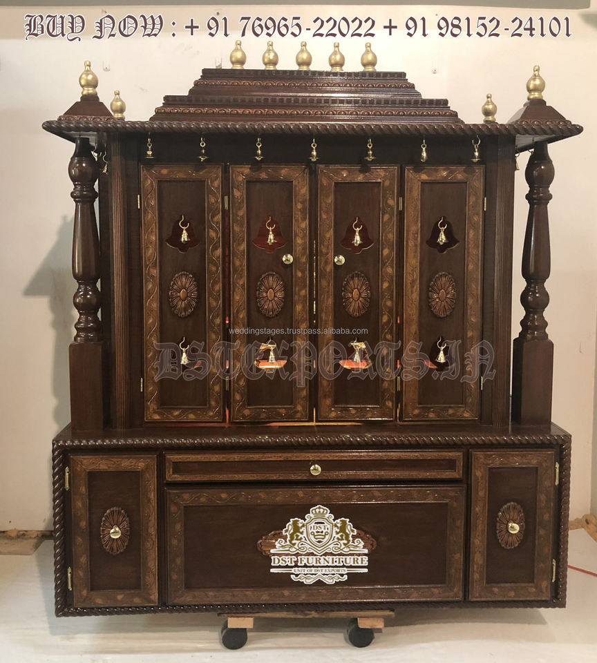 Mandir ไม้สักขนาดใหญ่ที่มีชั้นวางพิเศษที่เก็บของวิหารแบบดั้งเดิมทันสมัยทนทานน้ำหนักเบาใช้งานกลางแจ้ง