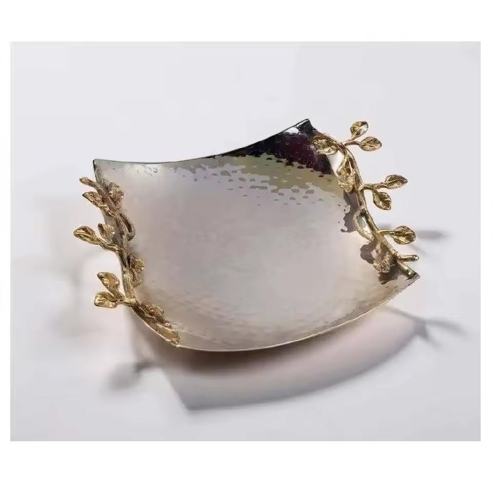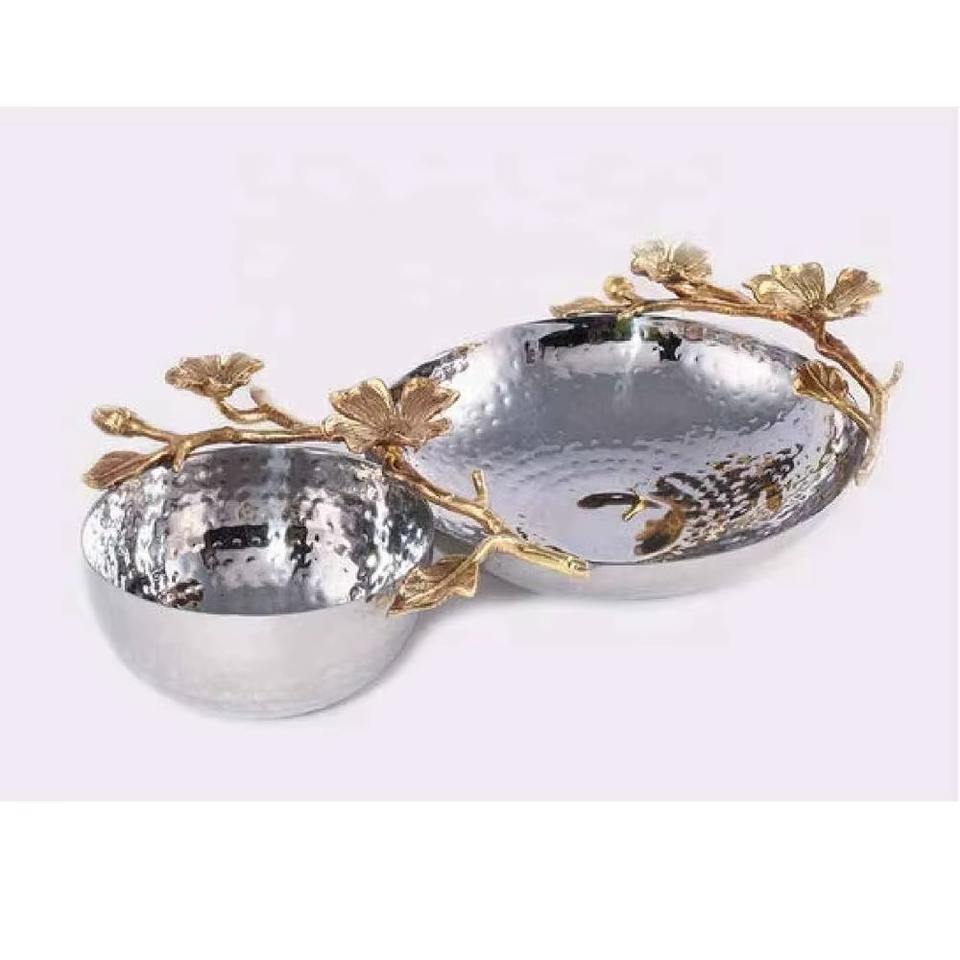 ชามตกแต่งลายใบไม้สีเงิน ดีไซน์สวยงาม ผิวเงา เหมาะสำหรับวางโชว์บนโต๊ะ ใส่ช็อกโกแลตและขนมหวาน นำเข้าจากอินเดีย