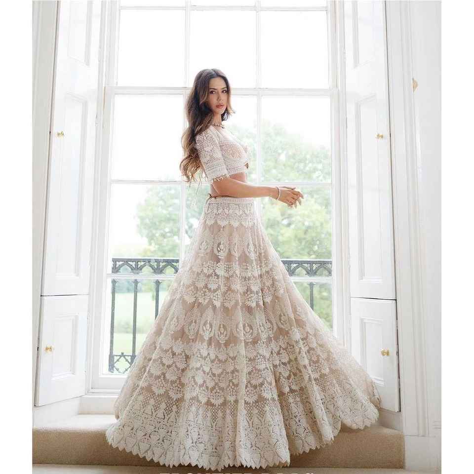 Lehenga choli ดีไซเนอร์สำหรับงานปาร์ตี้และคลับที่มีงานปักด้าย