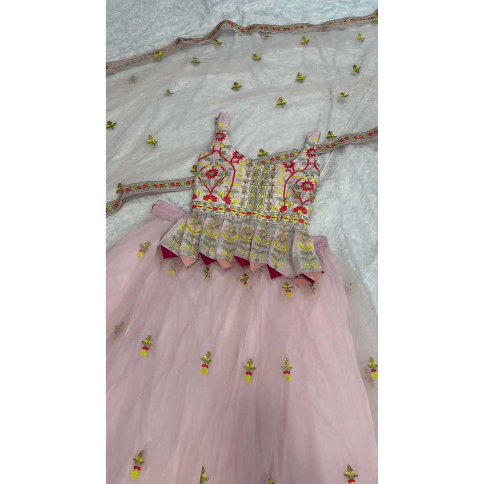 Lehenga choli ออกแบบสำหรับงานปาร์ตี้และงานแต่งงานที่มีงานศิลปะด้าย