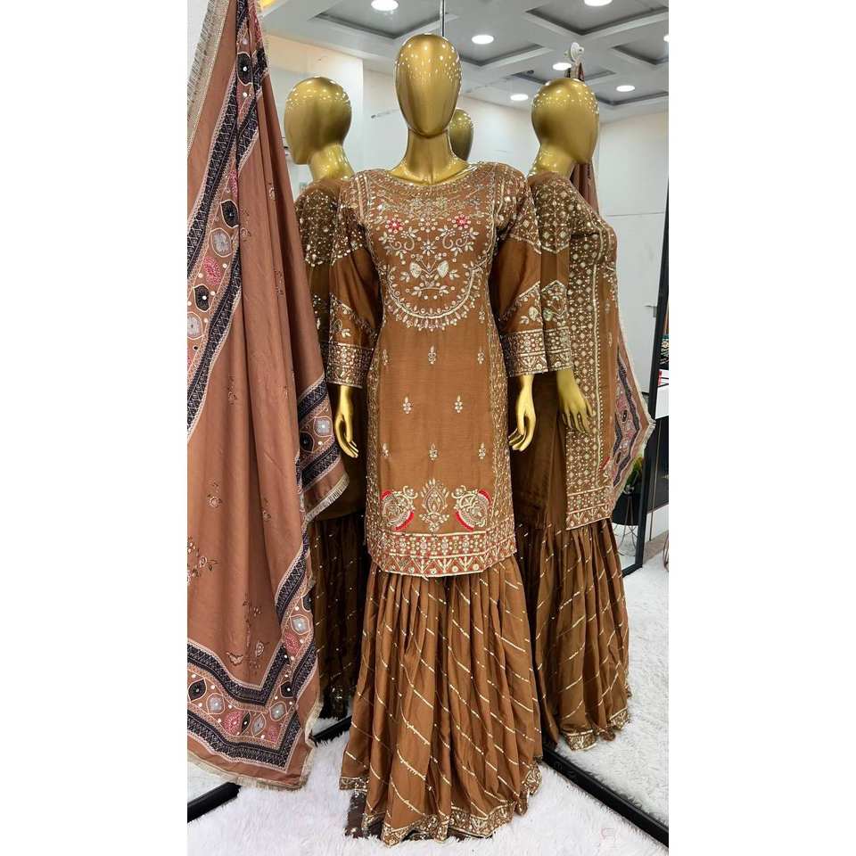 จั๊มสูทงานปาร์ตี้ปักขนาดใหญ่ดูดีไซน์เนอร์พร้อมเสื้อ Plazzo และ Dupatta