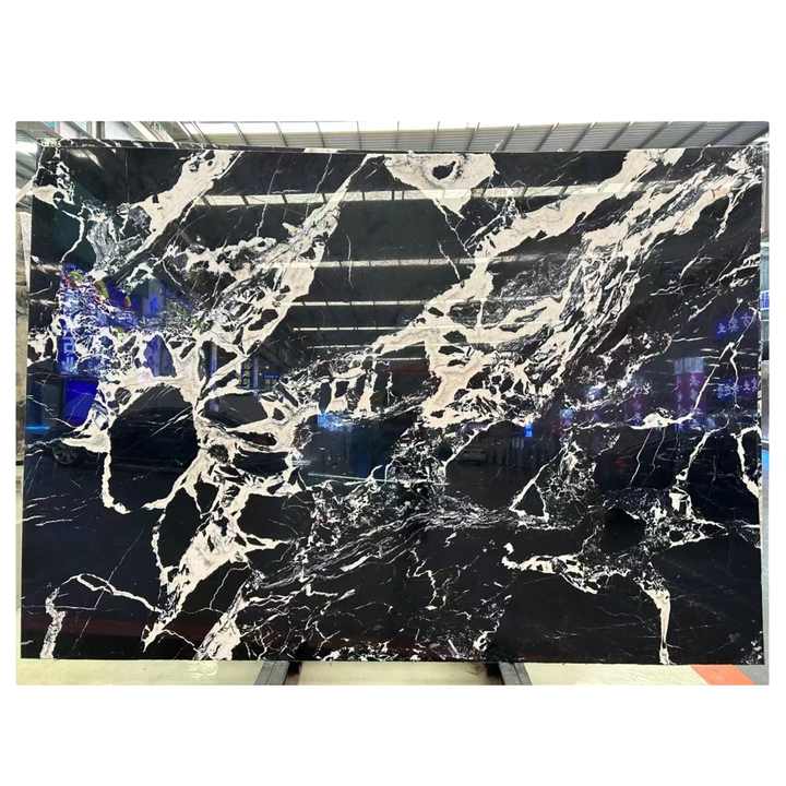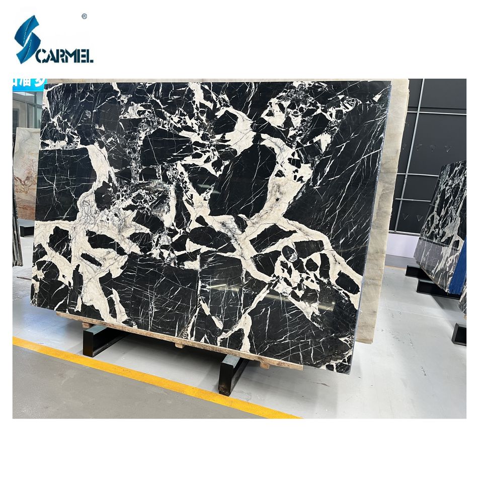 หินอ่อนสีดำและสีขาวสำหรับนักออกแบบชอบหินอ่อนสีดำหินอ่อนดอกไม้สีขาวสีดำโบราณขนาดใหญ่ธรรมชาติแผ่นหินอ่อนสีดำและสีขาว