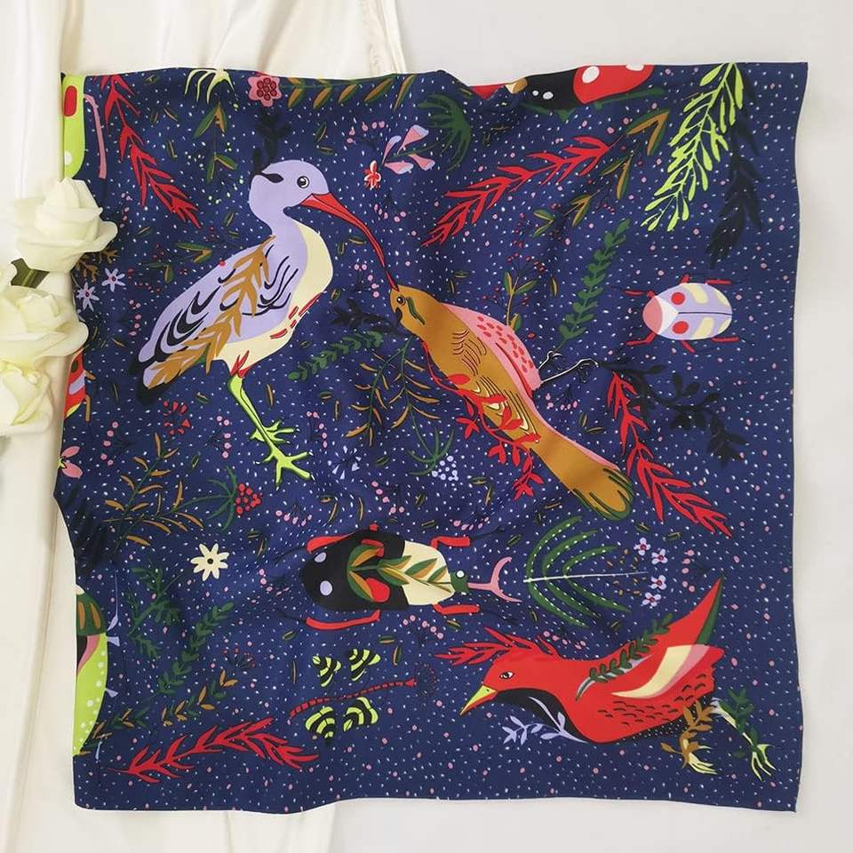 Designer Luxury Silk Scarf Bandana for Women Square Head Scarf Hair Wrap Neck Scarf Soft Smooth Satin Feel Elegant Ladies