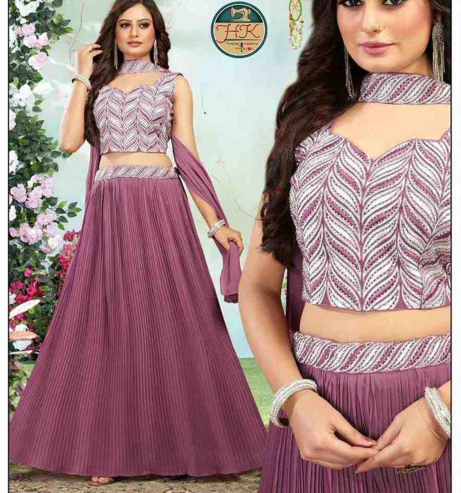 ชุดเลเฮนกาโชลีสีม่วงสำหรับผู้หญิง พร้อมเสื้อปักลายและกระโปรงจีบ เหมาะสำหรับงานแต่งงานและงานเฉลิมฉลอง