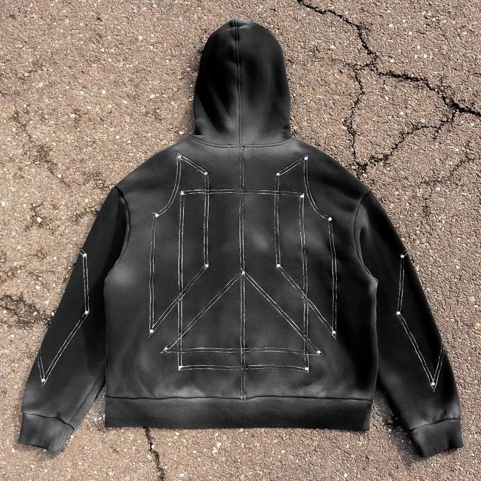 เสื้อฮู้ดผู้ชายดีไซน์เนอร์เสื้อแนวสตรีทโอเวอร์ไซส์ผ้าฝ้าย420gsm มีฮู้ดไซส์ใหญ่พิเศษมีซิปรูดขึ้นประดับพลอยเทียมสำหรับผู้ชาย