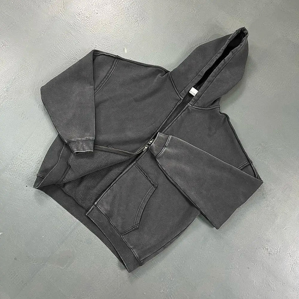 เสื้อฮู้ดผู้ชายดีไซน์เนอร์เสื้อฮู้ดโอเวอร์ไซส์โอเวอร์ไซส์ซักกรดผ้าฝ้าย480gsm มีซิปรูดแบบกำหนดเอง