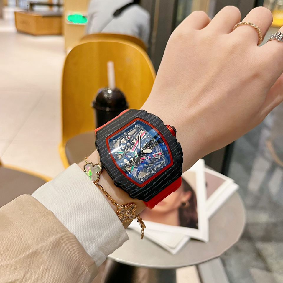 นาฬิกาข้อมืออัตโนมัติสำหรับผู้ชาย ดีไซน์หรู หน้าปัดใหญ่ โครโนกราฟ นาฬิกาสปอร์ตสุดหรู สายยางคุณภาพพรีเมียม นาฬิกา Richhar Mill