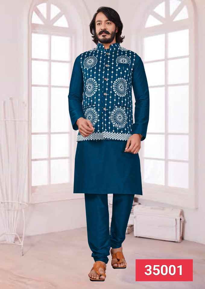 ชุดคุर्ตาผ้าไหมสำหรับผู้ชายพร้อมกางเกงและเสื้อโค้ทแบบดั้งเดิมที่มีลวดลายปักด้วยฟอยล์และกระจก