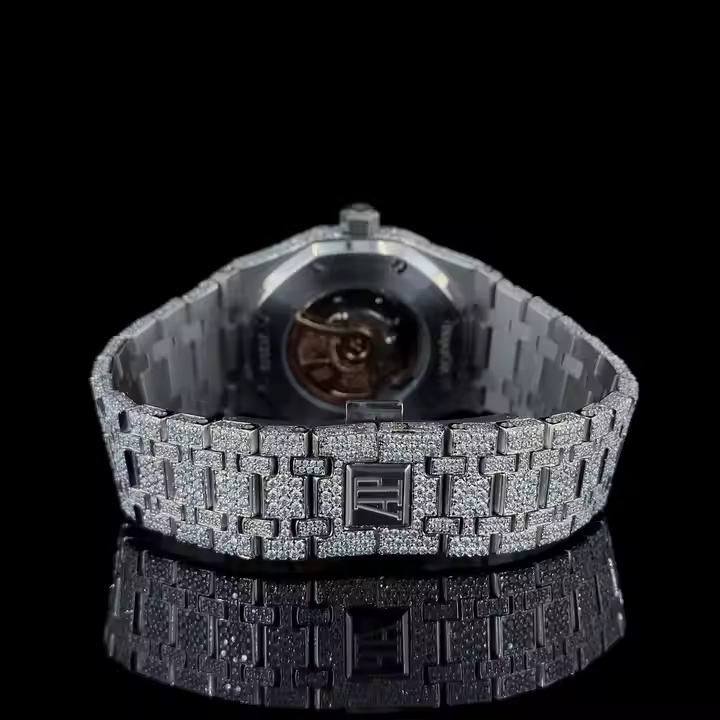 นาฬิกาข้อมือผู้ชายดีไซน์เนอร์ ระบบจักรกลอัตโนมัติ ประดับเพชร เพชรเลี้ยงในห้องปฏิบัติการ หรูหรา ตัวเรือนสแตนเลส หน้าปัดแบบโครงกระดูก กระจกหนา 5 มม.