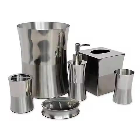 ชุดอุปกรณ์ห้องน้ำโลหะดีไซน์เนอร์ ที่ใส่กระดาษทิชชู่ ที่จ่ายสบู่เหลว แก้วแปรงสีฟัน ที่วางสบู่เหลว ถังขยะ